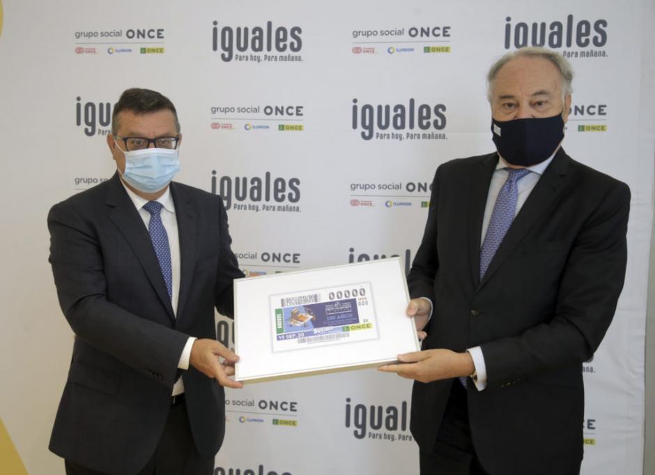 José Luis Martínez Donoso, director general de la Fundación ONCE, ha entregado a Juan Carlos Estévez Fernández-Novoa, presidente del Consejo General de Procuradores, y a Gabriel Mª de Diego Quevedo, decano del Ilustre Colegio de Procuradores de Madrid, sendas láminas enmarcadas con este cupón, que es fruto del convenio con el Colegio de Procuradores de Madrid, en coordinación con el Consejo General de Procuradores de España.