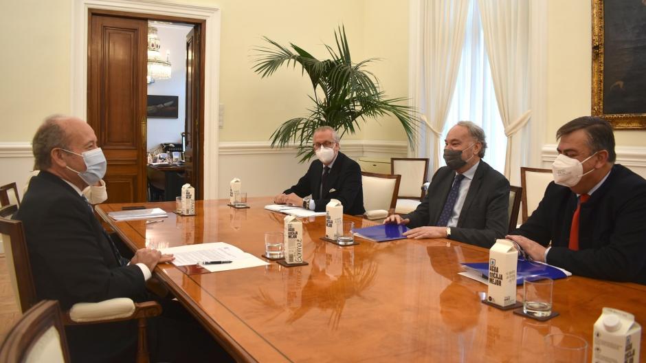 El Ministro de Justicia, Juan Carlos Campo, se ha reunido este lunes con el presidente del Consejo General de Procuradores de España, Juan Carlos Estévez, con el vicepresidente del CGPE, y Decano del Colegio de Procuradores de A Coruña, Javier Sánchez García y con el Secretario del Consejo, Antonio Mº Alvarez-Buylla Ballesteros.