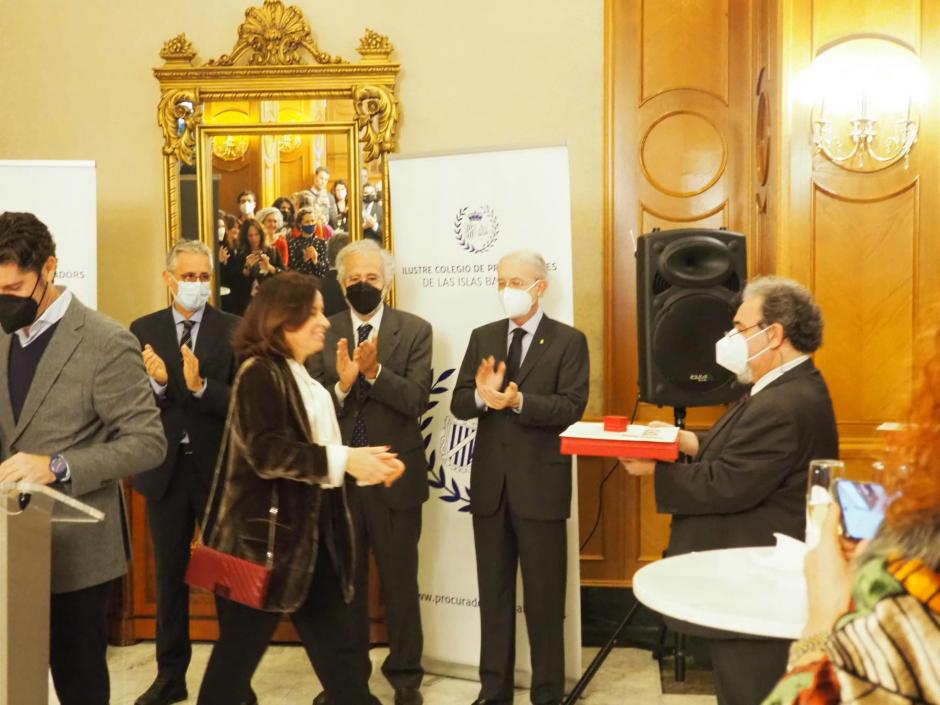 Y, finalmente, se hizo entrega de la 1ª Edición del, recientemente creado, Premi IU de l'any 2022, al Excmo. Sr. D. Antonio Terrassa Garcia. Con este premio, el Colegio, pretende distinguir la labor de quienes han contribuido a mejorar la Administración de justicia, principalmente en la comunidad balear o a quienes hayab representado o defendido, colectivos especialmente necesitados, de una forma desinteresada.