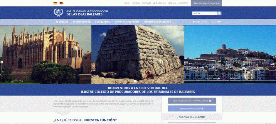 El Ilustre colegio de Procuradores de Baleares, da el pistoletazo de salida a la nueva web corporativa la cual va cumplir todas las exigencias legales que la normativa impone en relación a la necesidad que tiene el colegio de disponer de una página pública online de cara a los usuarios internos y externos, como que se convierta en una herramienta para el profesional. Desde ella se pueden acceder a la presentación de escritos (por LexNet), traslado de copias, hacer consignaciones o consultar colegiados mediante el enlace dispuesto para ello. Igualmente, se encontrarán herramientas administrativas y funcionales, así como noticias actualizadas o cuestiones de interés que afecten al colectivo.